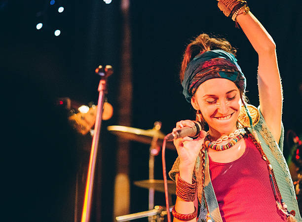 Young performer singing at a concert